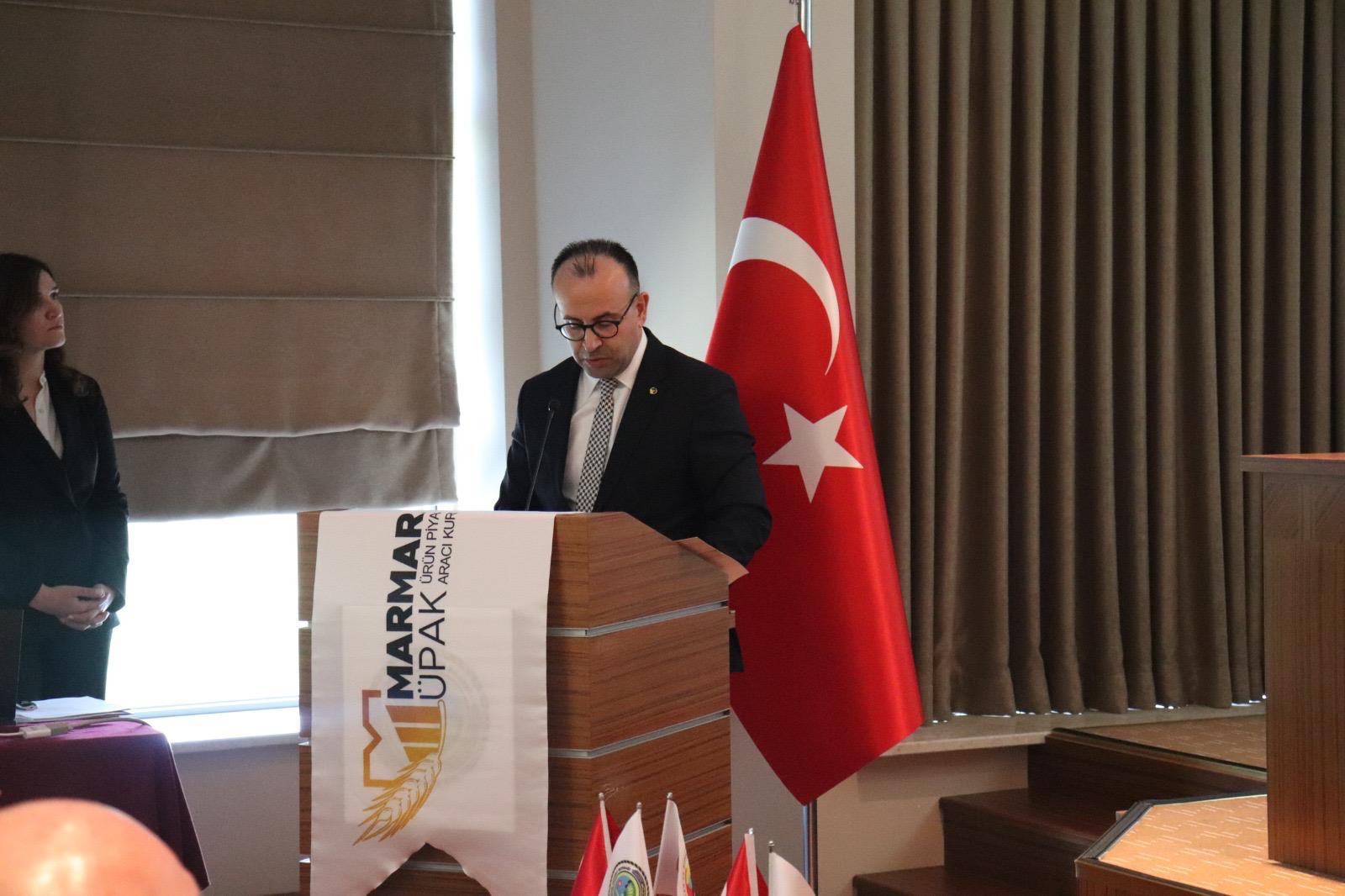 Marmara Bölgesindeki 23 Ticaret Borsasının ortağı olduğu, Marmara Ürün Piyasası Aracı Kurumu A. Ş. (Marmara ÜPAK), 2024 yılı 1. Olağan Genel Kurul Toplantısı, Tekirdağ Ticaret Borsası Konferans Salonunda gerçekleştirildi.